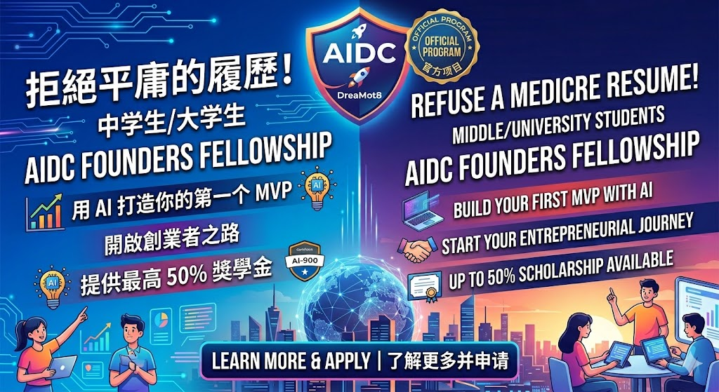 你是對未來感到迷茫的中學生,還是正在尋找實戰機會的大學生?在 AI 浪潮席捲全球的今天,掌握工具只是基本,能利用 AI 解決真實問題、創造商業價值的人,才是未來的領跑者。