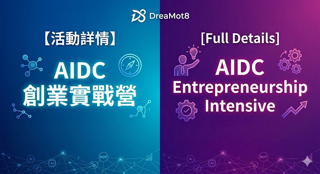 在這個 AI 技術爆炸成長的時代,創業不僅需要遠見,更需要一套能迅速落地、具備實戰價值的執行路徑。DreaMot8 誠邀各位對 AI 創業充滿熱情的追夢者,加入我們這場為期一整天的 AIDC 創業專題活動。從產品開發模型、深度腦力激盪,到產業前輩的成功經驗分享,我們將帶領您一步步從零到一,打造出您的首個 AI 創業藍圖!