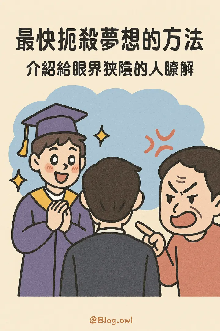 大家好,我是DreaMot平台的創辦人之一。今天,我想和大家聊聊一個讓無數夢想家心碎的真相:最快扼殺夢想的方法,就是把你的熱血構想,介紹給那些眼界狹隘的人去「瞭解」。是的,你沒聽錯。不是批評,不是嘲笑,而是那種看似善意的「建議」,往往像無形的枷鎖,把你的翅膀綁得死死的。